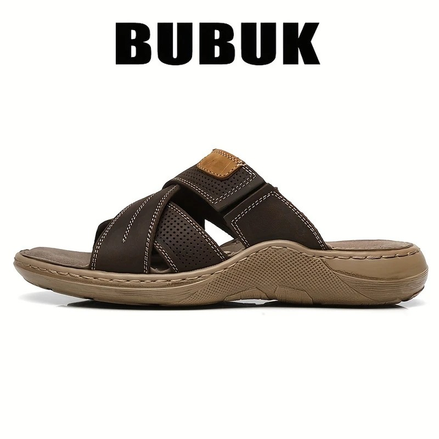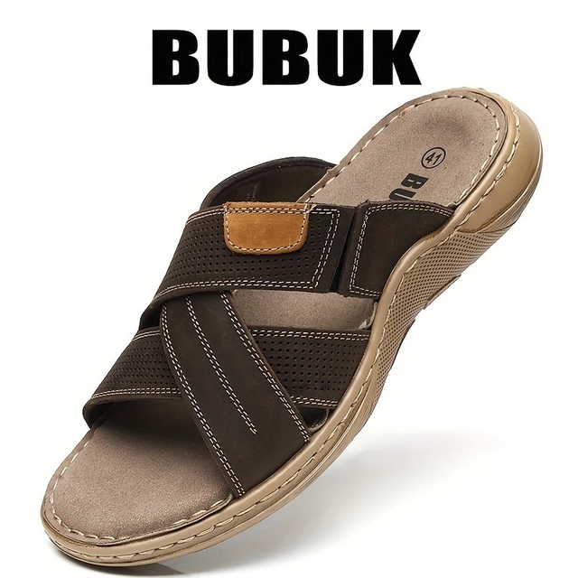 Men's Genuine Leather Slide Sandals - Black, Breathable & Comfortable with Arch Support, Casual Summer Beach Shoes for Indoor/Outdoor Use, Outdoor Sandals | Slipon Style | Durable Pu Sole