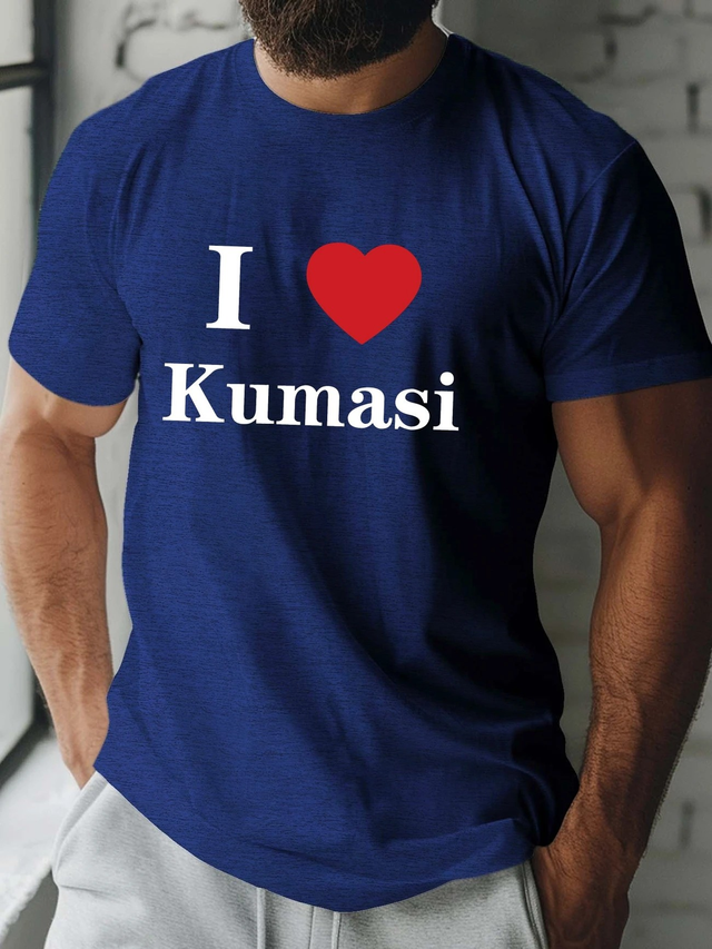 Love Kumasi Print Men's Crew Neck T-shirt, Short Sleeve Comfy Versatile Tee Tops, Summer Casual Clothing