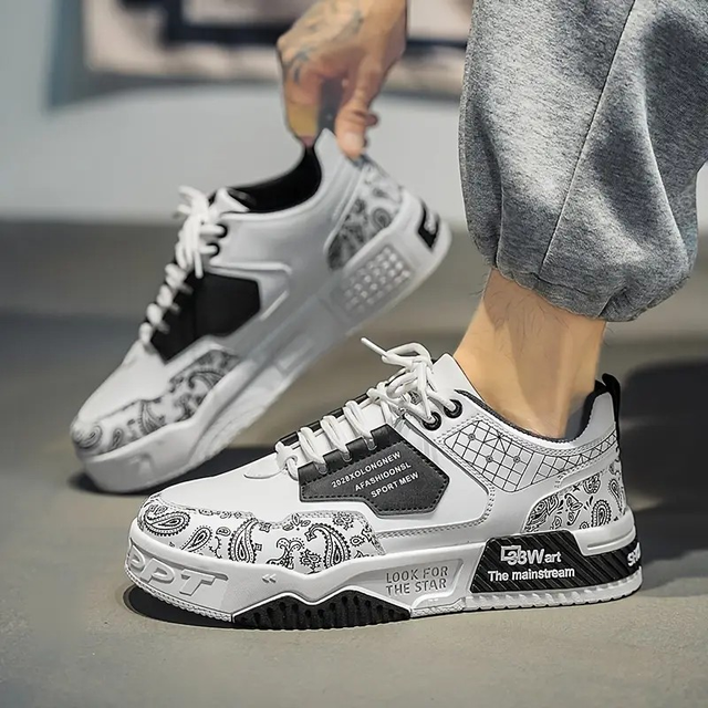 Men'S Low-Top Skate Sneakers - Breathable Synthetic, Non-Slip EVA Sole, Lightweight Comfortable Casual Shoes for All-Season Outdoor & Daily Wear, White with Black Accents, Skate Shoes, Allseason Footwear, Modern Street Style, Durable Fabric Insole
