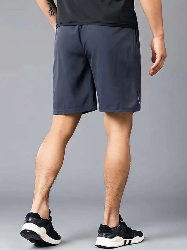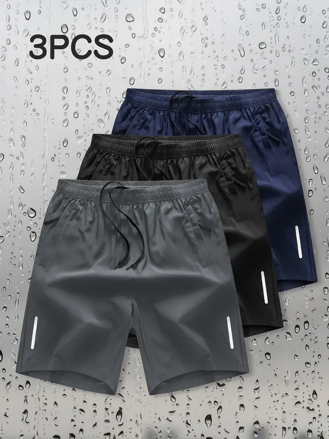 3pcs Men's Athletic Shorts - Stretch & Breathable Workout Shorts with Drawstring Waist, Quick-Dry Gym Shorts for Running, Hiking, Training - Lightweight Polyester/Elastane Blend (Black/Dark Blue/Gray) - Ideal for Home & Outdoor Sports, Sporty Design, Durable Sportswear