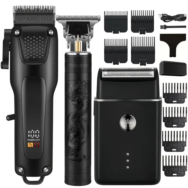 3pcs Men'S Professional Hair & Beard Grooming Kit - Cordless Clippers with LED Display, Precision Trimmer Set, USB Rechargeable, For Home, Perfect Holiday Gift