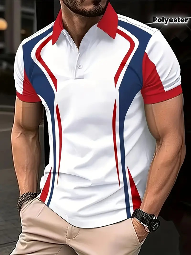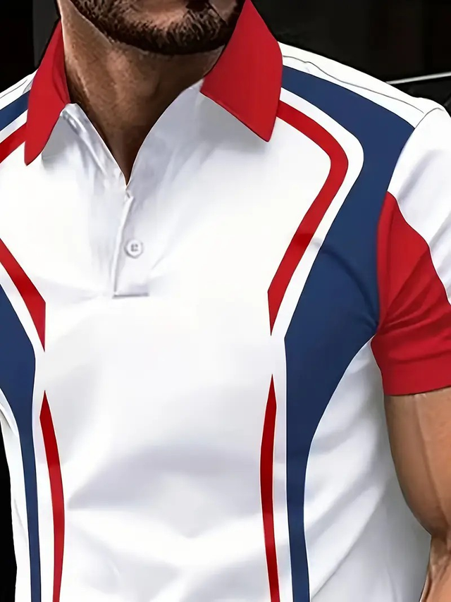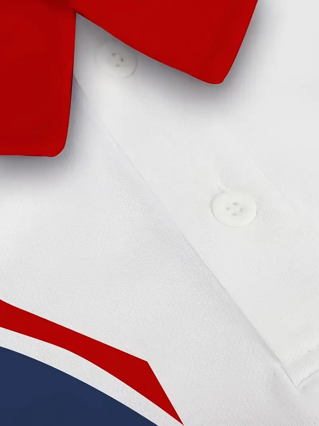 Men's Summer Short Sleeve Knit Shirt - Casual Chic Geometric Print with Red Lips & Black Hearts, Breathable Button-Up Collar, Regular Fit for Beach & Office Wear, Smooth Texture Fabric, Weekend Style, Trendy Design, Comfortable Material, Stylish Men