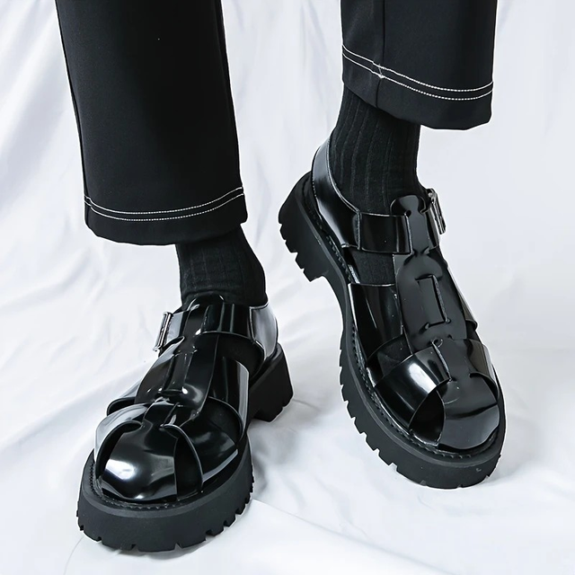 Men's Slip-On Loafers - Glossy Black & Red Accents Casual Dress Shoes, Comfortable Low-Top Design with Rubber Sole for Business & Casual Attire, Versatile Dress Shoes | Sleek Glossy Finish | Rubber Sole Shoes