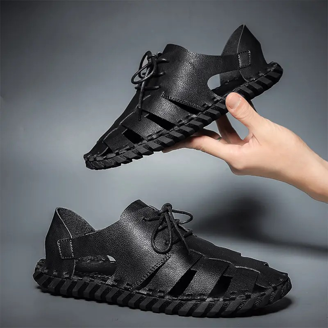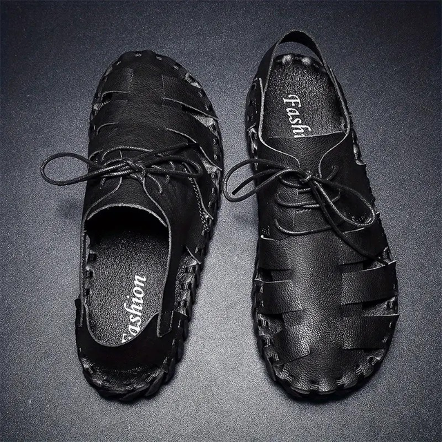 Men'S Stylish Black Sandals with Strappy Design - Casual Lace-Up Shoes for Beach, Outdoor, and Festival Wear, Compatible with Most Sandals, Beach Footwear | Laceup Sandals | Synthetic Upper Sandal
