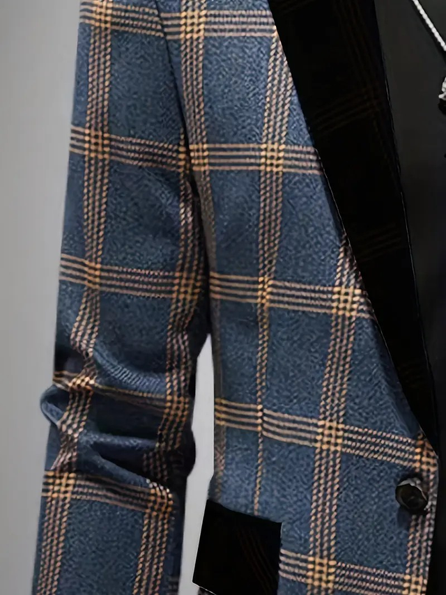 Men'S Stylish Plaid Slim Fit Blazer - Casual Long Sleeve, Button-Up, Non-Stretch Fabric, Regular Fit, Ideal for Spring/Fall, Formal Wear|Slim Fit Blazer|Sleek Appearanc