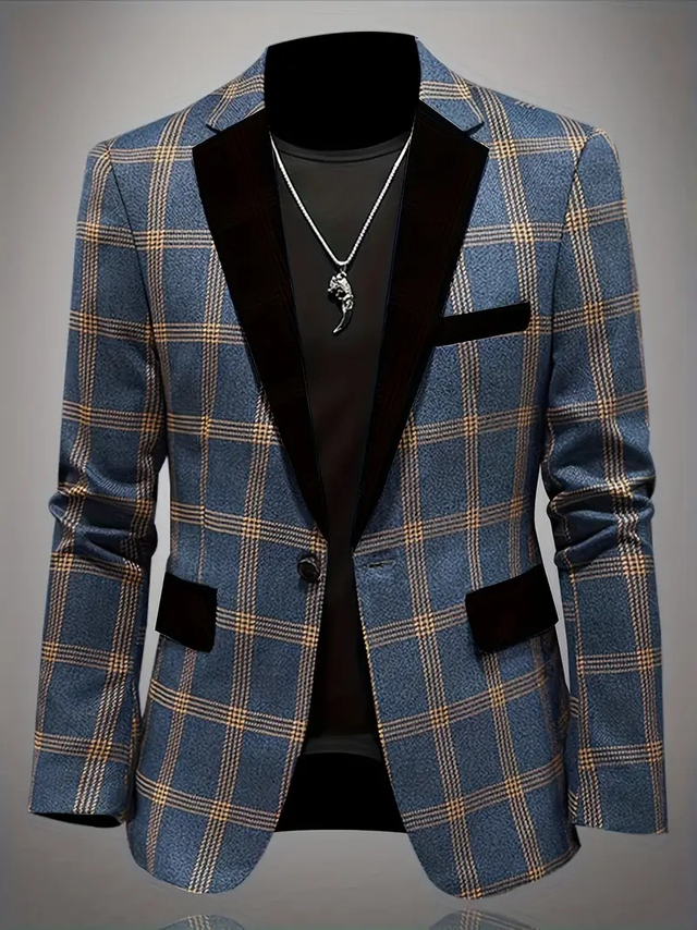 Men'S Stylish Plaid Slim Fit Blazer
