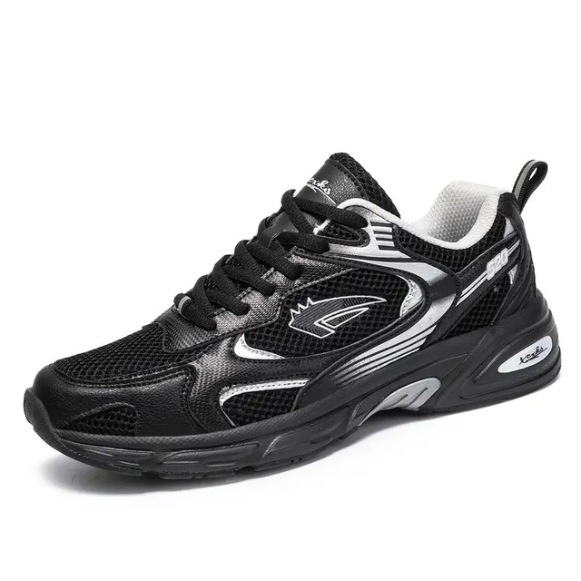 Men's Stylish Sports Shoes In Black With Silvery, Breathable Mesh, And Large Sizes 40-46, Perfect For Casual Wear.
