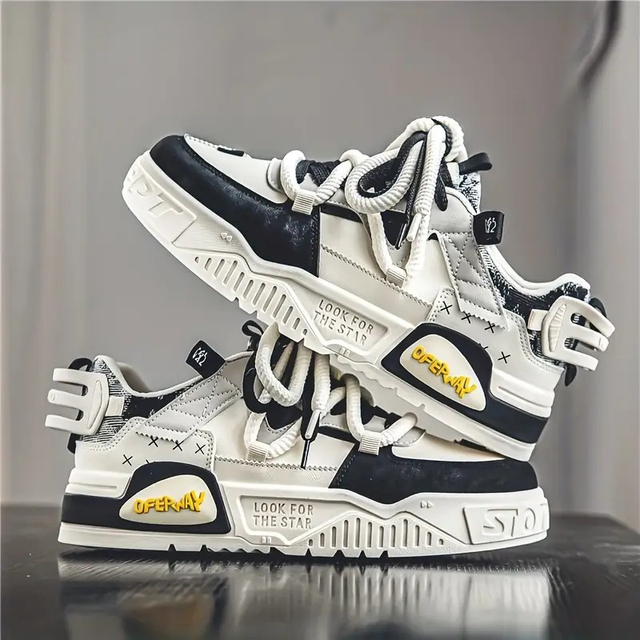 Men's Trendy Chunky Sneakers - Spring 2024 Collection, Casual & Sporty Low-Top Lace-Up Shoes with Thick Sole for Height Boost, Non-Slip Rubber Outsole, Breathable Fabric Lining, in White/Beige/Green Camouflage - Perfect for Daily Wear & Outdoor Activities, Outdoor Shoes|Laceup Sneakers|Pu Upper Sneakers
