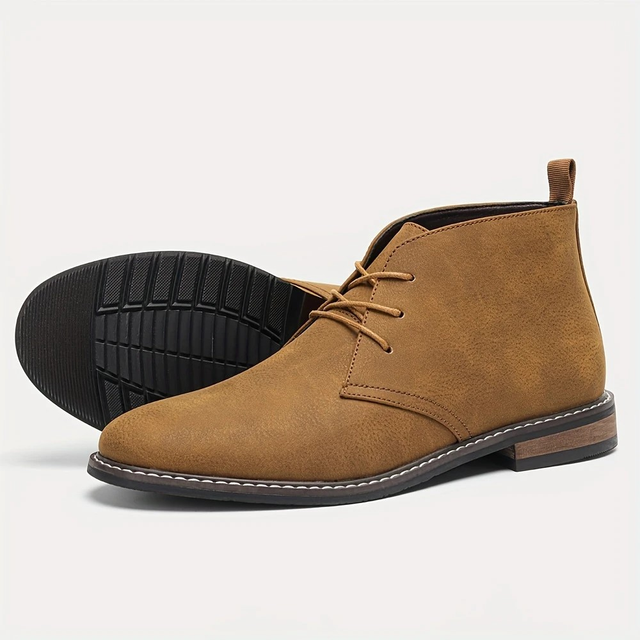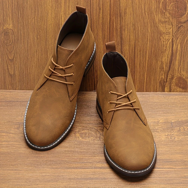 Men's Vintage Brown Ankle Boots - Lace-Up Desert Style with Round Toe & Rubber Sole for Casual & Casual Attire, Spring/Fall Collection, Autumn Boots | Laceup Boots | Boots