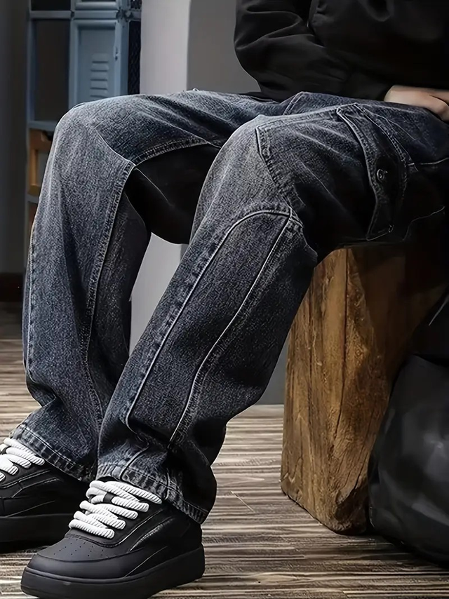 Men'S Washed Cat Whisker High Street Straight Casual Harem Pants