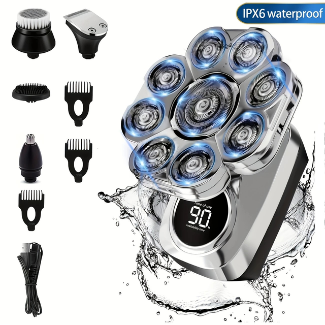 9D Multi-Function Ultimate Shaver - Electric Shaver for Men with 6-in-1 Design, Wet/Dry Use, Rechargeable Cordless Grooming Kit for Beard, Body, and Facial Hair Trimming - On-the-Go Convenience with Long-Lasting Battery Life