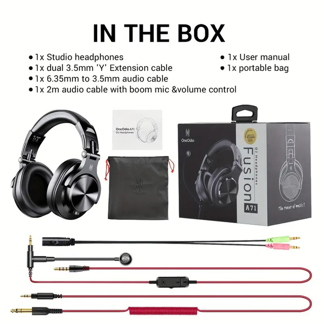 OneOdio A71m Studio DJ Gaming Headphones with Hi-Res Audio, Boom Mic, Noise Isolation & Detachable 3.5mm/6.35mm Cables for PC, PS4, Xbox One, Zoom, Office - Adjustable Headband, Padded Ear Cups, Volume Control