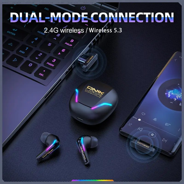 ONIKUMA Wireless Gaming Earbuds, Low Latency 5.3 Headset with Dual Connection (2.4G & Wireless 5.3), Ergonomic Design, ENC Noise Cancelling Mic, Deep Bass, Compatible with PC, PS5, PS4, Switch, VR, Laptop, Immersive Experience | Ergonomic Earbuds | Sleek Construction, Wireless Earbuds