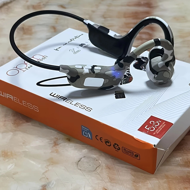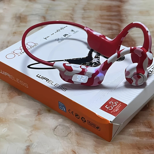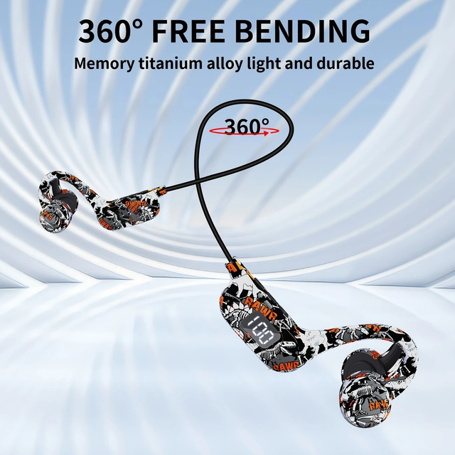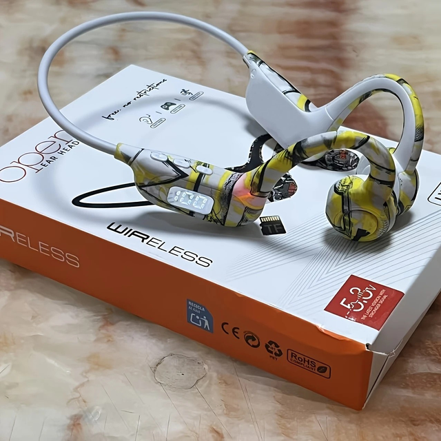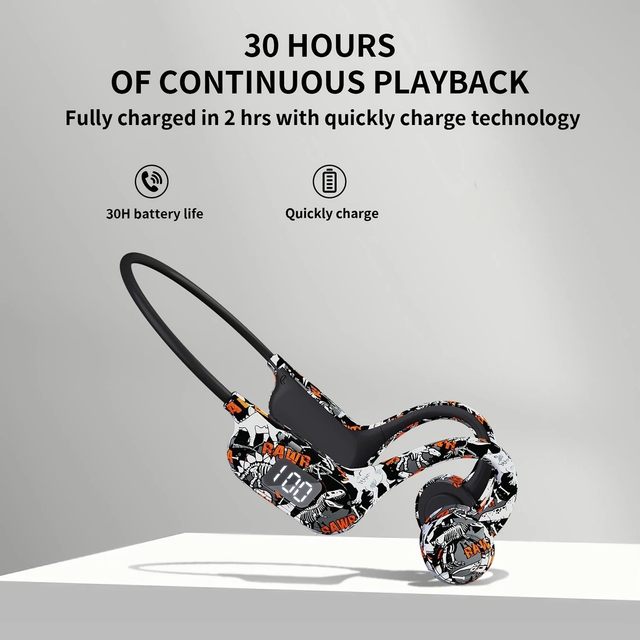 Open-Back Wireless Bone Conduction Headphones with Microphone and Battery Display