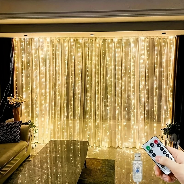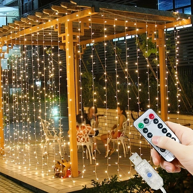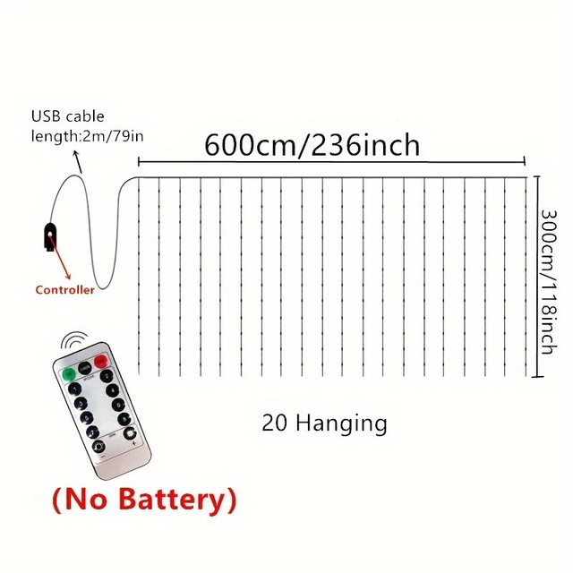 600 LED Outdoor Fairy Light Strings with Remote, USB Powered 6M x 3M Decorative Metal Lights for Room, Bedroom, Window, Wall, Birthday, Wedding, Party, Ramadan, Valentine's, Thanksgiving, Halloween, Christmas Decorations, Warm White (Pack of 1)