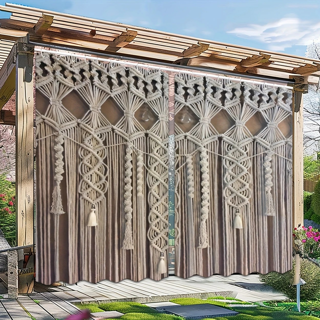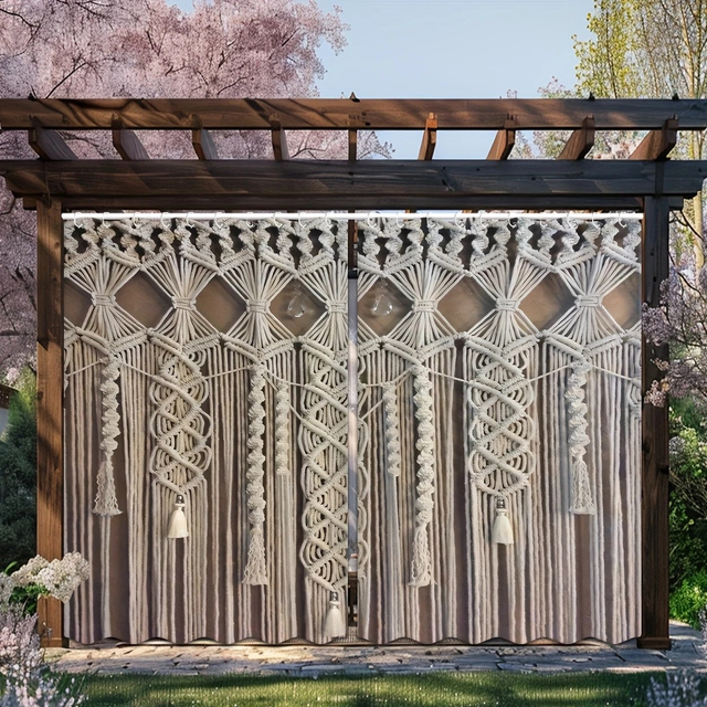 2pcs Outdoor Hanging Curtain, White Rope Braided Decorative Artistic Pattern Curtains for Doors, Windows, Garages, Gardens, and Indoor Use - Suitable for Corridors, Patios, Bedrooms, Living Rooms