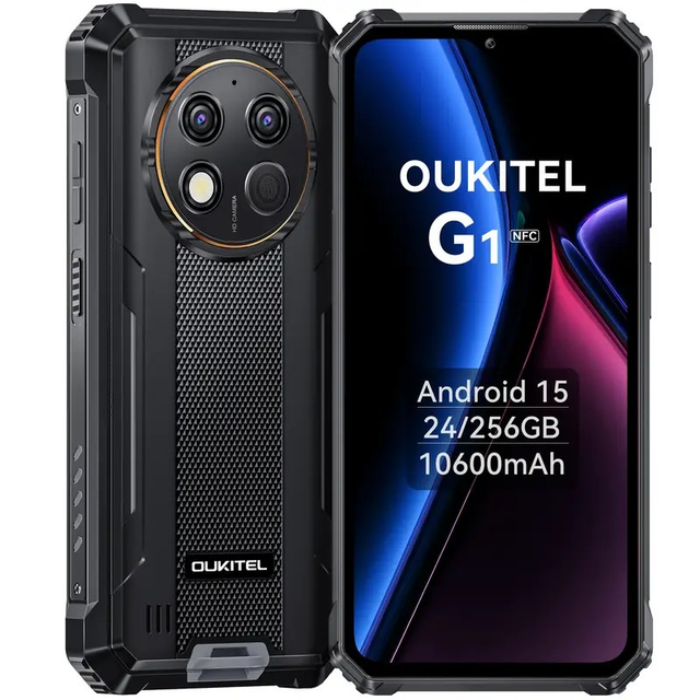 OUKITEL G1 Rugged 2025 Phone - Android 14, 10600mAh Battery, 6.52" Display, 24MP (6+18MP) + 256GB Storage, Dual SIM, IP68, NFC, OTG, GPS, Face ID - Outdoor, Courier, Takeaway-Ready