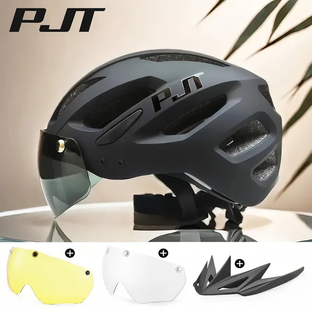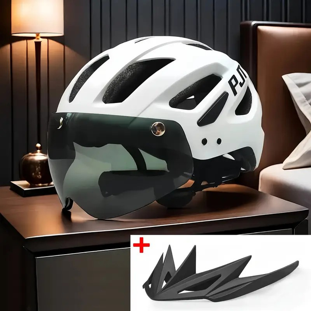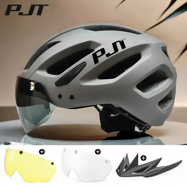PJT 4-in-1 Lightweight Bike Helmet with Detachable Windscreen and Sunshade - Versatile MTB & Road Cycling Helmet, PC Material, Adjustable Fit for Men and Women, Mountain Bike Helmet
