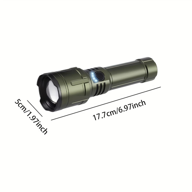 Powerful 5000mAh Aluminum Alloy Flashlight with Focus Fire Lens, USB-C Rechargeable, 500mAh Battery Capacity, Ideal for Camping, Outdoor Adventures, Car Repair, and Home Improvement