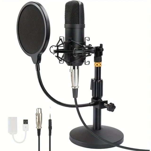 [Premium Microphone] Premium Condenser Microphone Kit | 3.5mm & XLR Connectors, Pop Filter & Shock Mount - Ideal for Studio Recording, Podcasting, Broadcasting & Gaming, Computer PC, Professional Studio