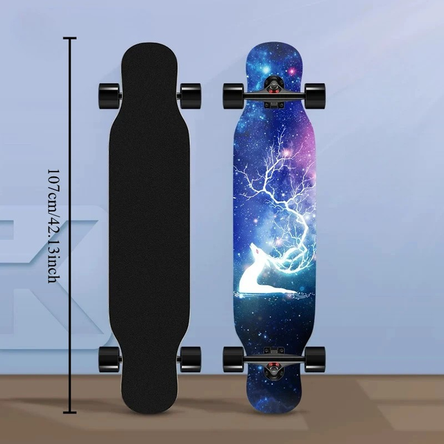 Professional Skateboard with High-Elasticity Wheels – Stylish Galaxy & "HEATING" Designs, Perfect for Teens and Adults, White/Black Options, Allskill Levels, Cosmic Deck Design, Durable Construction, Quality Components