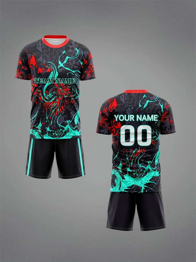 Round Neck T-Shirt Soccer Uniform Set for Men