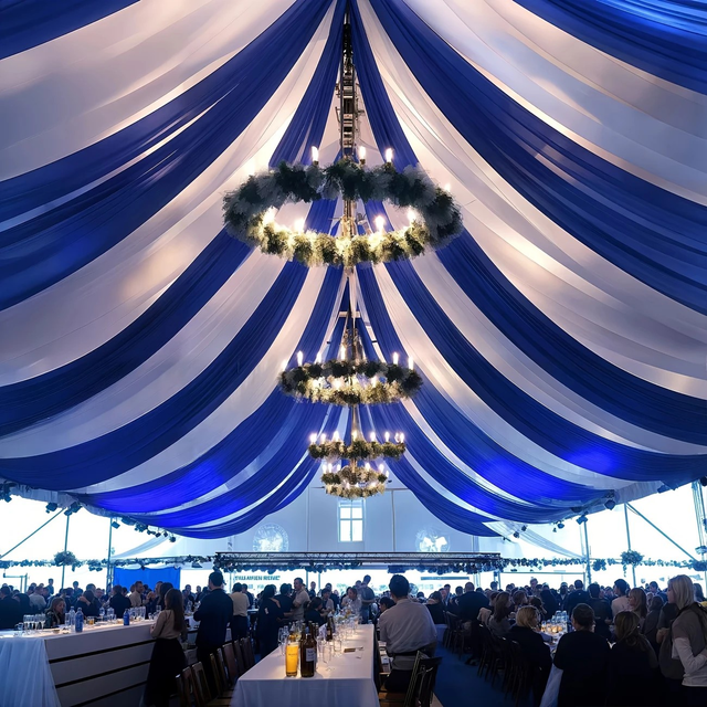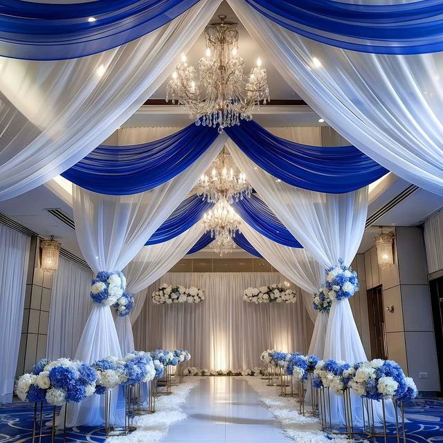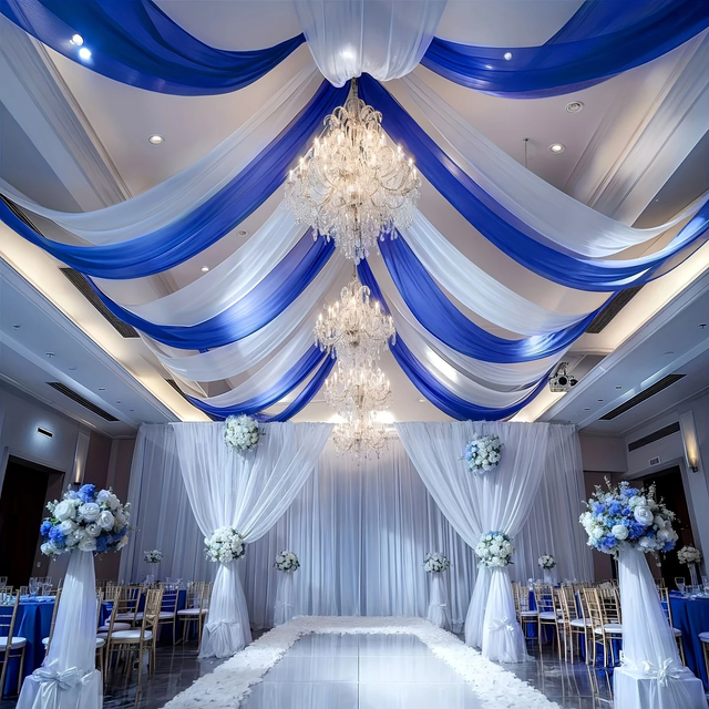Royal Blue and White Ceiling Curtain Set 5 x 26ft 2pcs