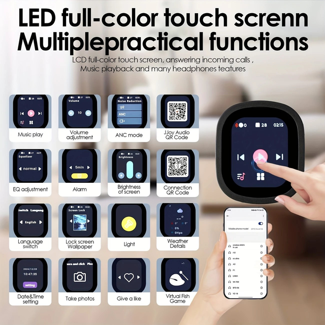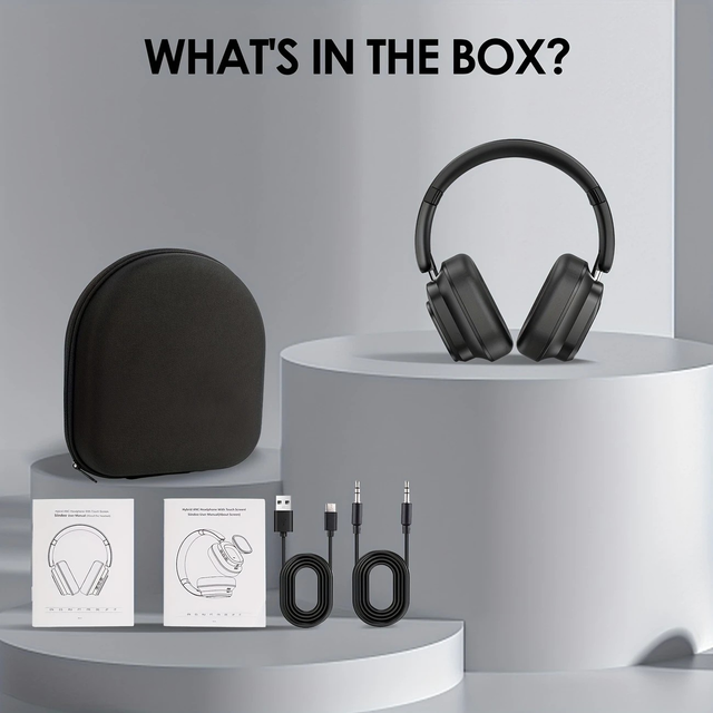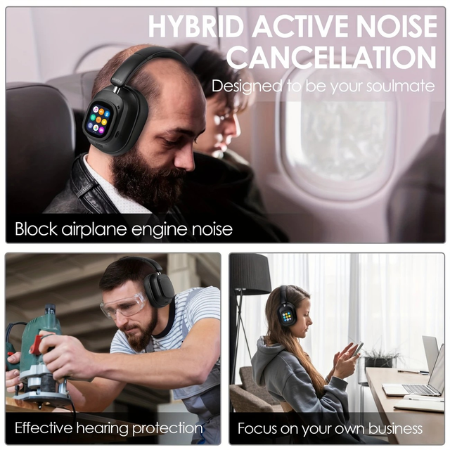 Siindoo NEWEST Hybrid Active Noise Cancelling Headphones, Wireless Over Ear Wireless Headphones with Multi Magnetic Touch Control LCD Screen 1GB MP3 AND APP Download