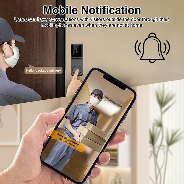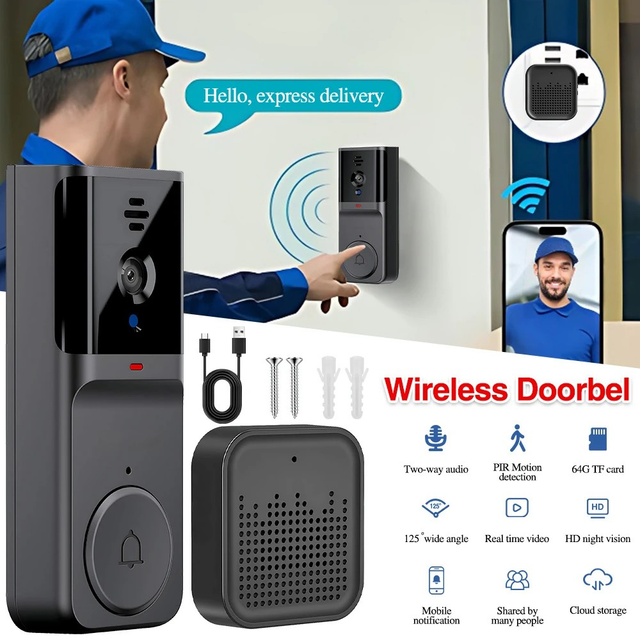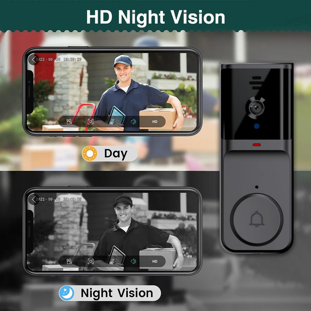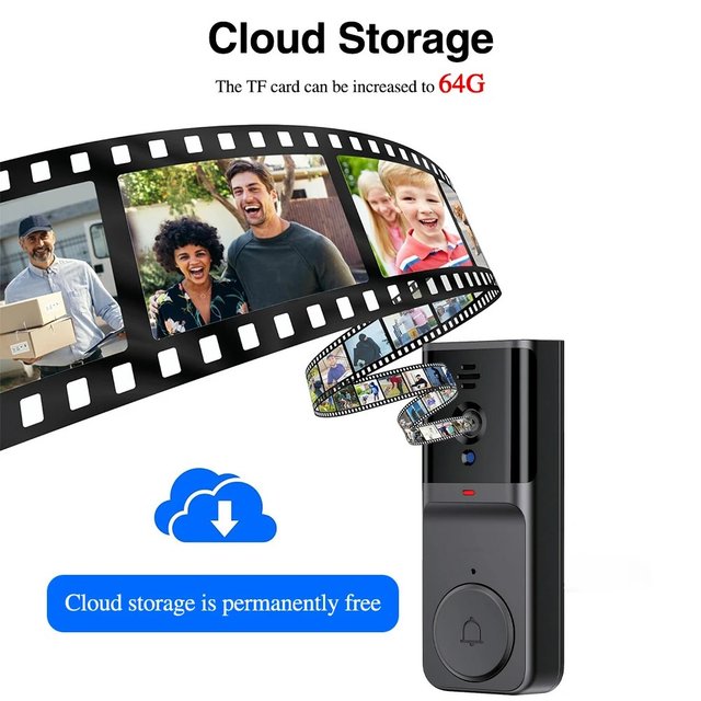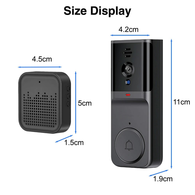 Smart Video Doorbell - Wireless, 2.4G WiFi Security Camera with Night Vision, Two-Way Audio, Real-Time Notifications, Cloud Storage, widely Use, Smart Home Security | Modern Doorbell Design | Durable Build Quality, Smart Doorbell