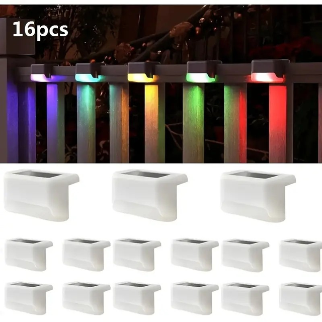 16pcs Solar Fence Lights Outdoor - LED Deck, Railing, Stair, Step & Garden Lighting Set with Installation Hardware - Perfect for Christmas, Holiday & New Year Decor, Outdoor Lighting | Multi-Color Lighting | Nickel Battery Solar Lights, Fence Light Cover, Outdoor Lights for Yard