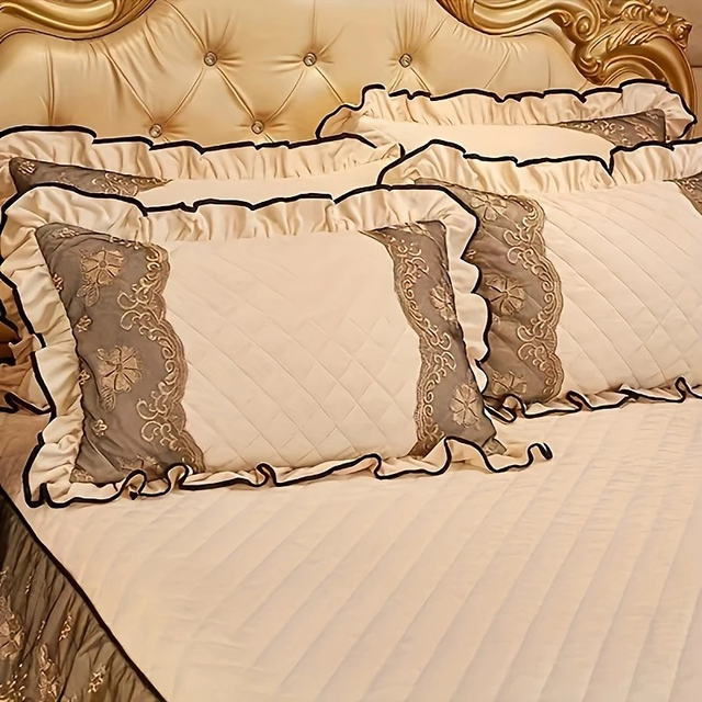 3pcs of thickened autumn and winter lace bed skirt, crystal velvet bed skirt lace bed cover, soft and comfortable, bedroom and guest room bedding, autumn and winter thickened and velvet (1 bed skirt and 2 pillowcases, without core)