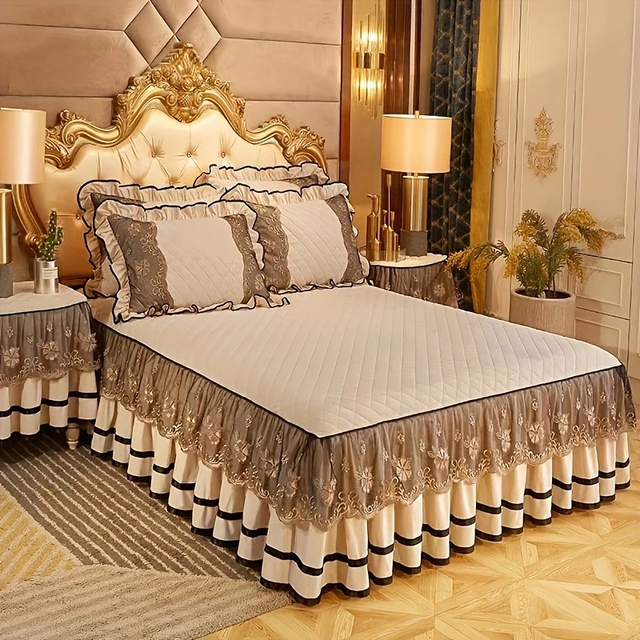 Thickened autumn and winter lace bed skirt 3pcs