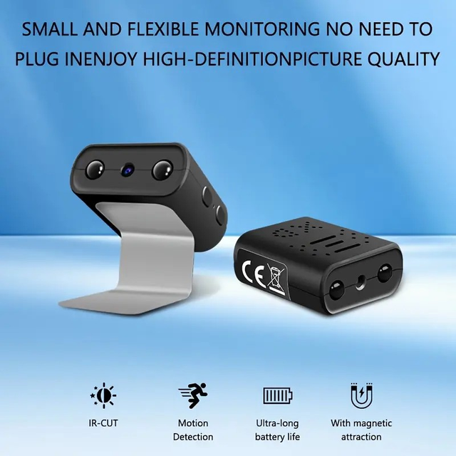 Tiny, Powerful Mini Camera with Night Vision & Motion Detection - Portable, Self-Adhesive Security Camera for Home, Pet, and Vehicle Monitoring, 64GB TF Card Support, Rechargeable Lithium Battery, 90mAh, Home Security | Compact Camera | Touch Control, Security Camera