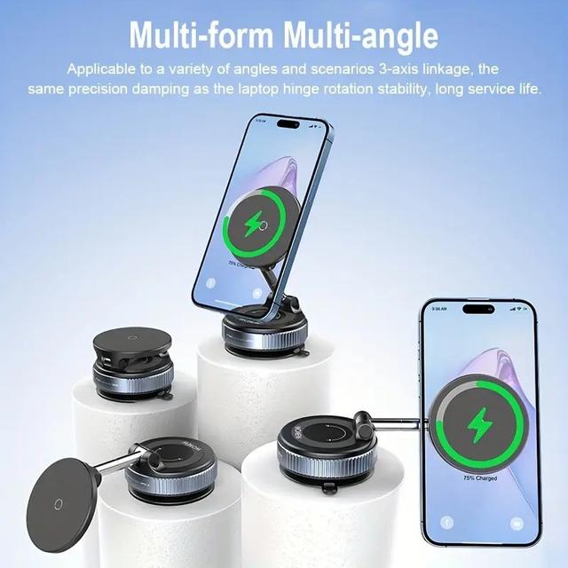Ultra-Strong Magnetic Phone Mount | 360° Rotatable, Retractable & Foldable | 15W Wireless Charging | Multi-Scene Use for iPhone 16/15/14/13/12 Pro Max & Smartphones | ABS Material | Suction Cup Attachment | Ideal for Home, Car, Office, Gym, Travel, Car Mounts for Phones