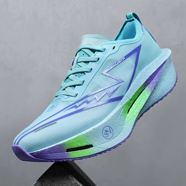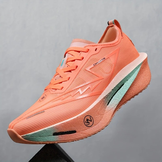 Unisex Lightweight Breathable Running Shoes - Full Carbon Plate Technology, White/Blue/Orange Colorway, Low-Top Mesh Design for Marathon, Sprint & Casual Wear - Spring/Summer Athletic Footwear, Flexible Rubber Sole