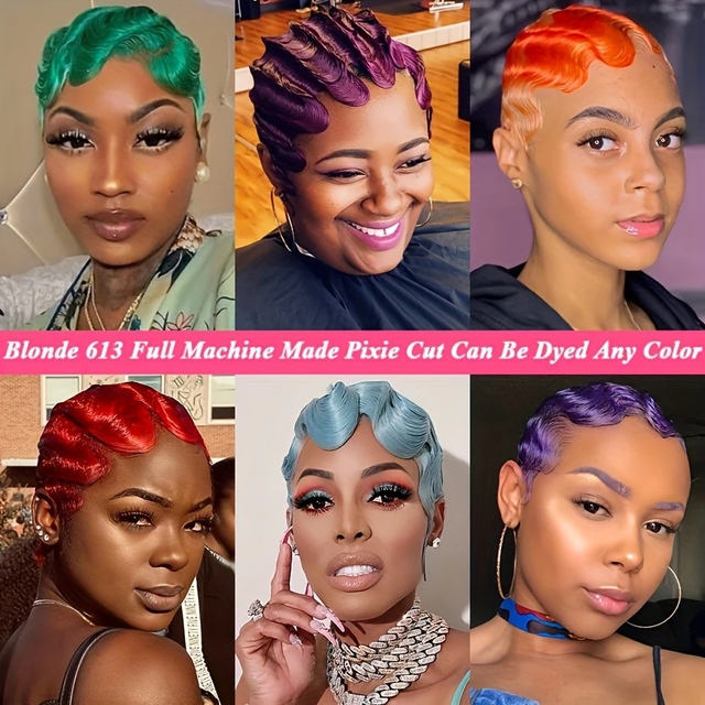 Women 180% Density Chic Finger 613 Blonde Pixie Cut Wig