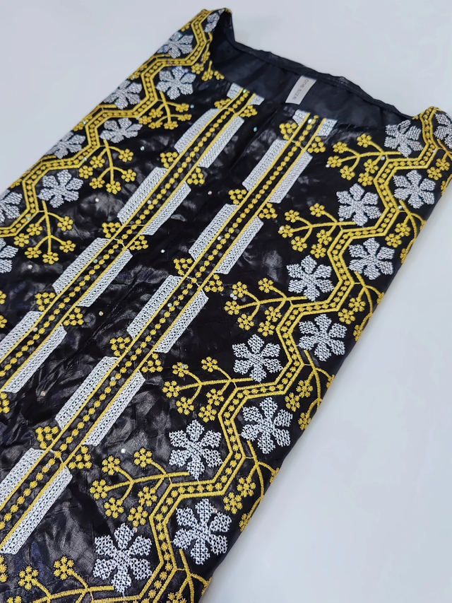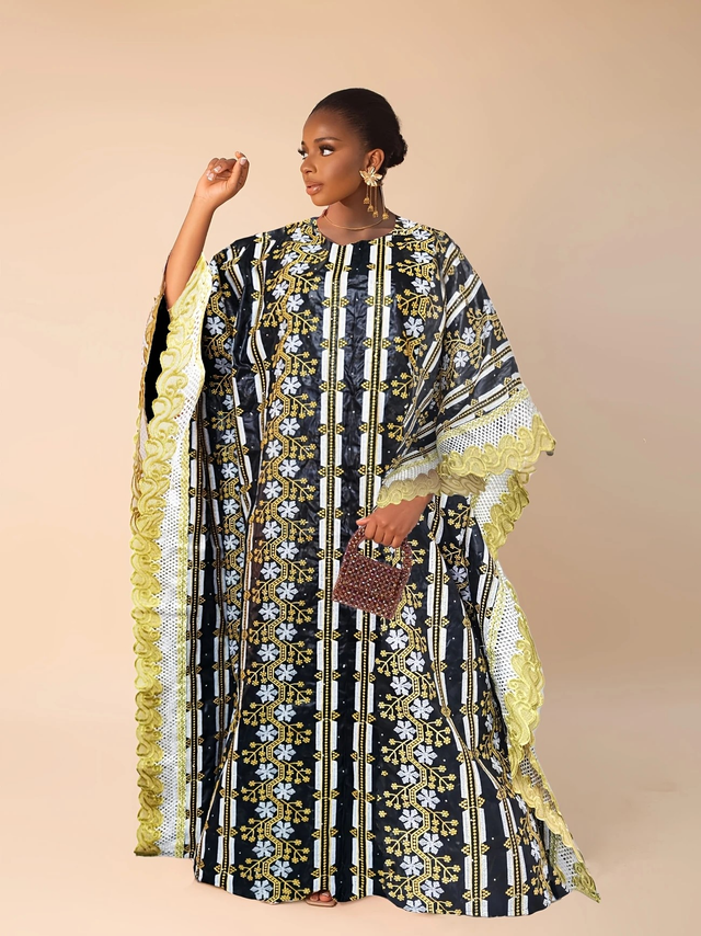 African Traditional Bazin Riche Boubou Dress for Women, Embroidered & Stone Detail, Nigerian Dashiki Wedding Gown, Long Sleeve, Geometric-Pattern, Polyester 100%, Non-Stretch, Woven, All Season Robe