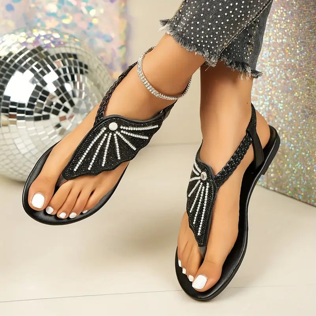 Women Bohemian Crystal Embellished Open-Toe Beach Shoes