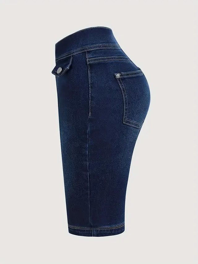Dark wash high-waisted stretch jeans with 5-pocket design, double-stitched waistband, and hidden button closure https://goods-vod.kwcdn.com/goods-video/product-aigc-video/e6886a7922bd95318e9e6a5a9cbbb22252d14b4a.f30.mp4