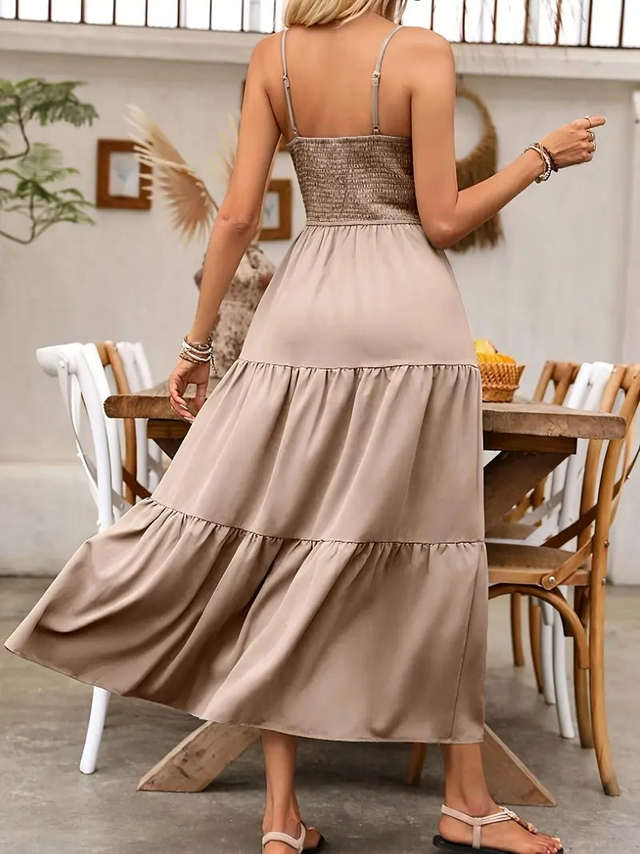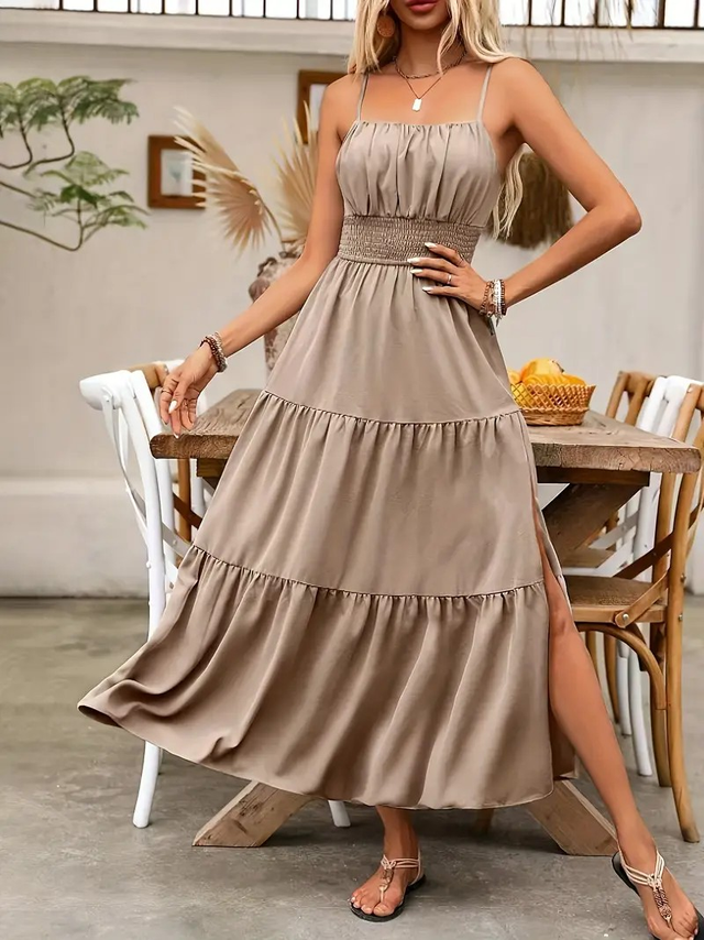 Women Elegant Solid Color Maxi Dress