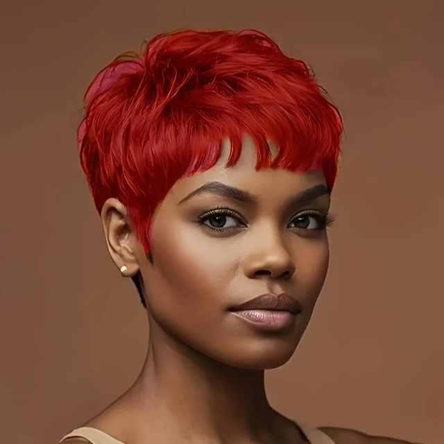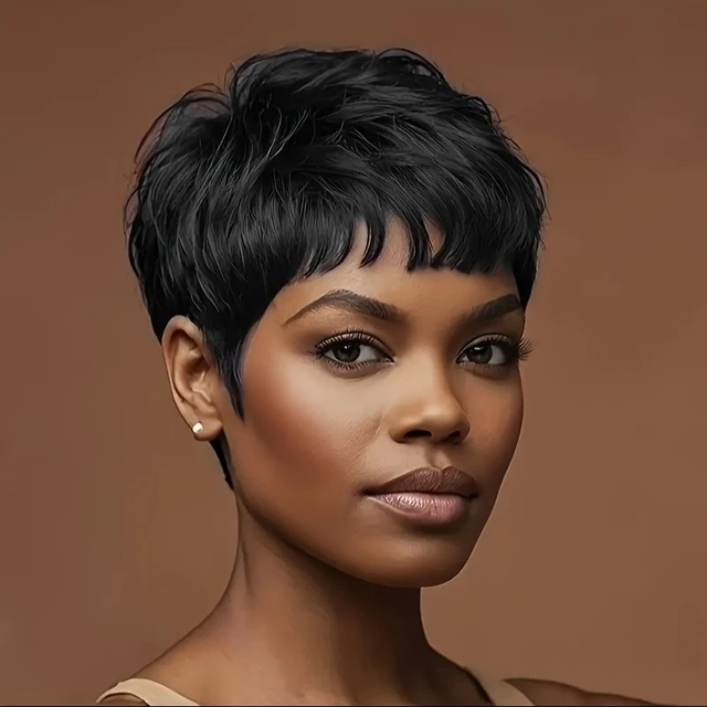 4 Inch Brazilian Remy Human Hair Pixie Cut Wig with Bangs - Glueless, Short Straight Bob Style, Soft Rose Net Cap, Perfect for Daily Wear & Christmas Cosplay, 180% Density, Straight Hair Wig | Pixie Cut Wig | Brazilian Remy Hai