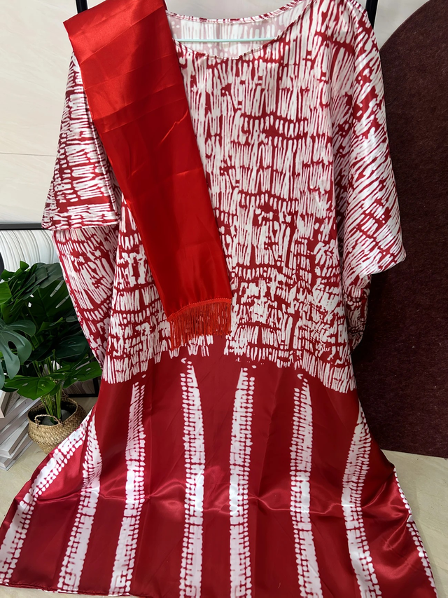African Women'S Traditional Wedding Party Clothing, Original Riche Dashiki Long Robe with Printed Evening Dress and Scarf, Loose Fit, Three Quarter Length Sleeves, Solid Color, Long Length, All-Season, No Padding, Pullover Placket, Trapezoid Hem, for Party, Wedding, Casual Wear