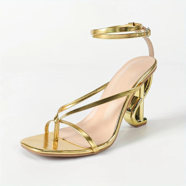 Women's Chic Golden Square Toe Ankle Strap Sandals