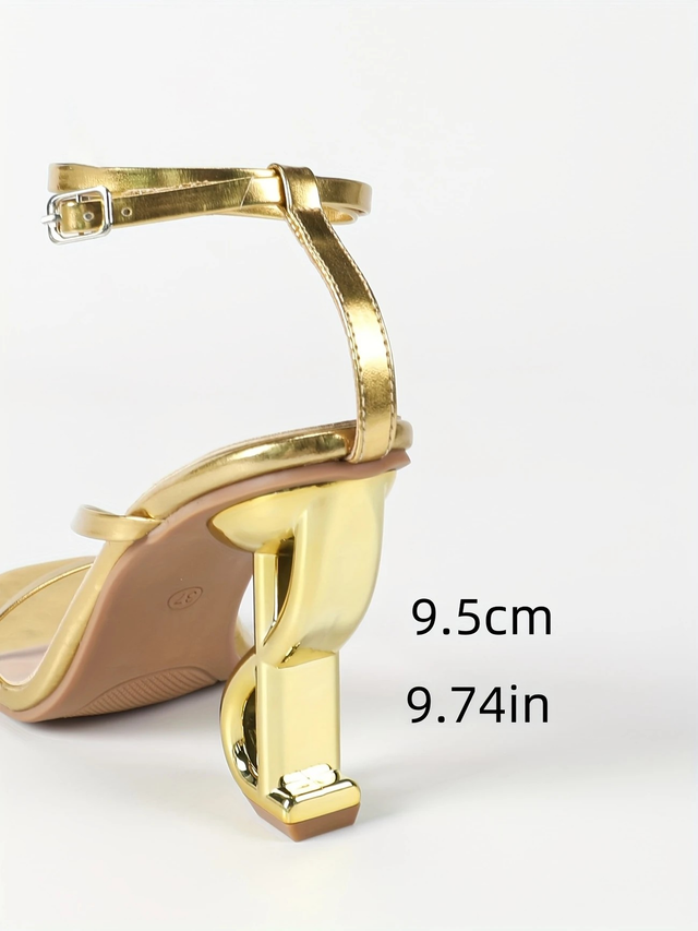 Women'S Chic Golden Square Toe Ankle Strap Sandals - High Heel, Open Toe, Buckle Closure, Rubber Sole, Perfect for Summer Parties and Casual Wear, Stylish Outdoor Footwear | Chic Sandals | Durable Footwear