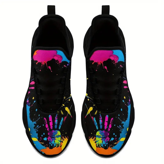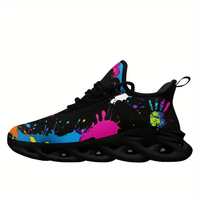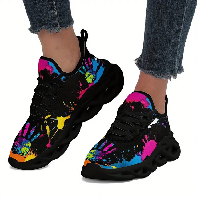 Women's Colorful Splatter Paint Design Breathable Mesh Sneakers