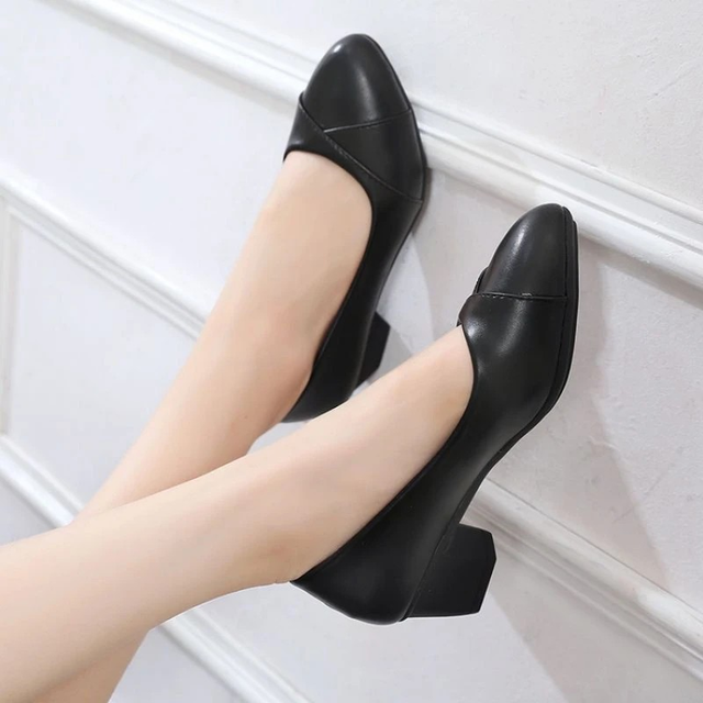 Women'S Comfortable Black Pointed-Toe Slip-On Loafers - Soft Synthetic Cover, Low Heel, Breathable Fabric Lining, Elegant All-Season Work Shoes for Office & Casual Wear, Ladies Shoes