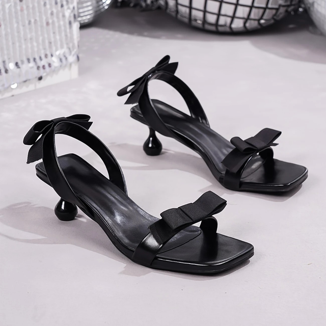 Women's Elegant High Heel Sandals with Front & Back Bow Decor