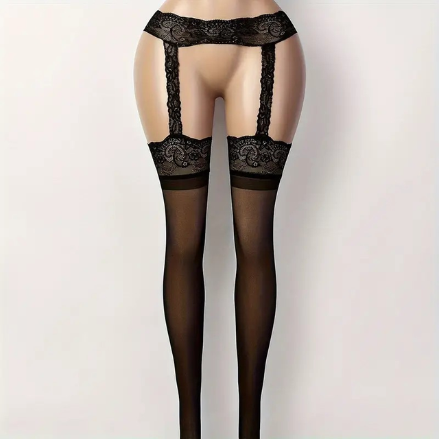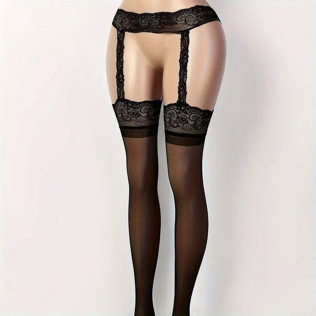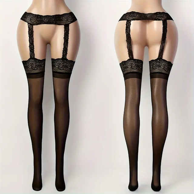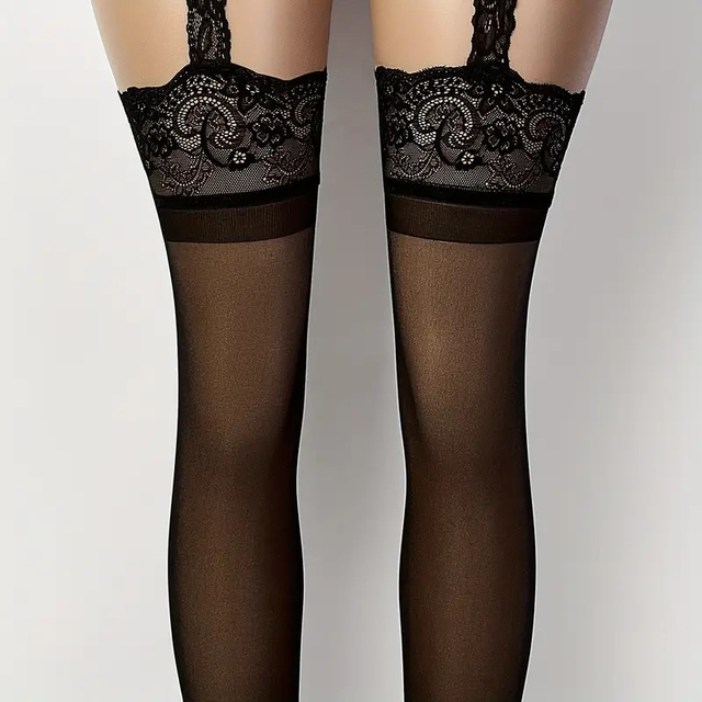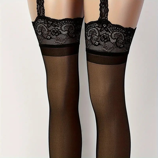 Women's Elegant Sheer Black Stockings with Lace Detailing - Breathable Stretch Pantyhose, Comfort Fit & Machine Washable for Casual & Formal Wear