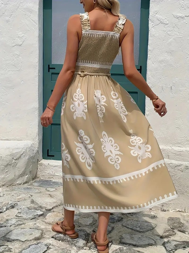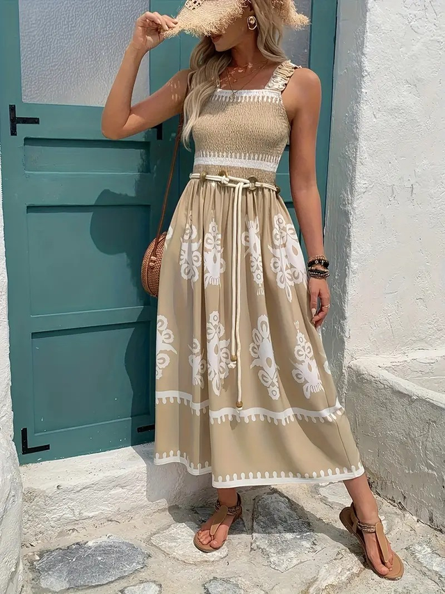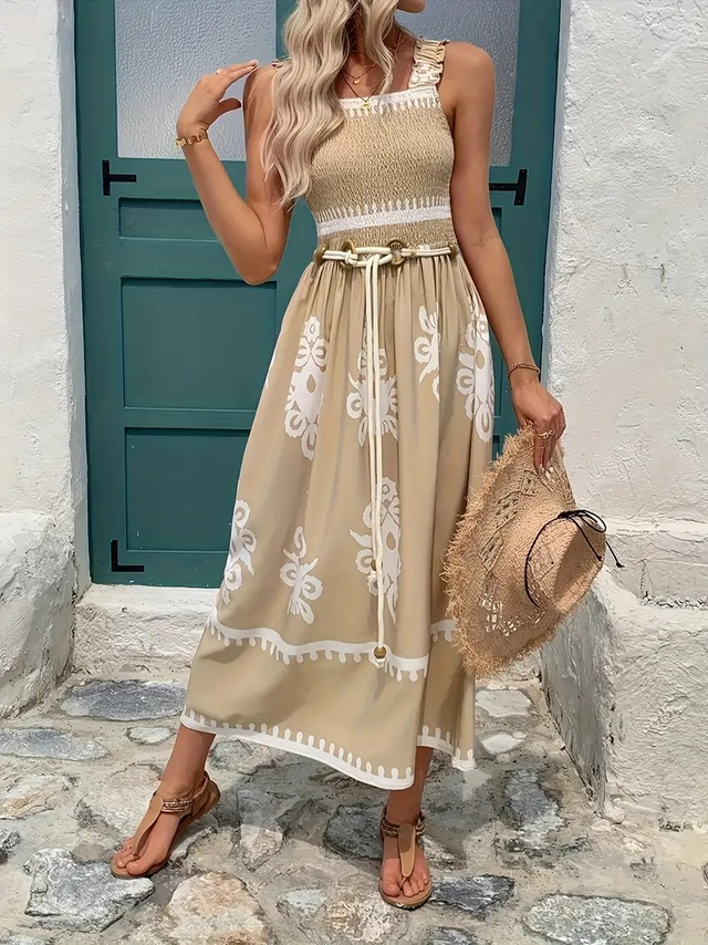 Women's Floral Print Sleeveless Midi Dress with Belt
