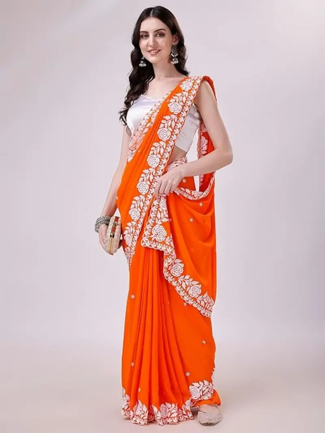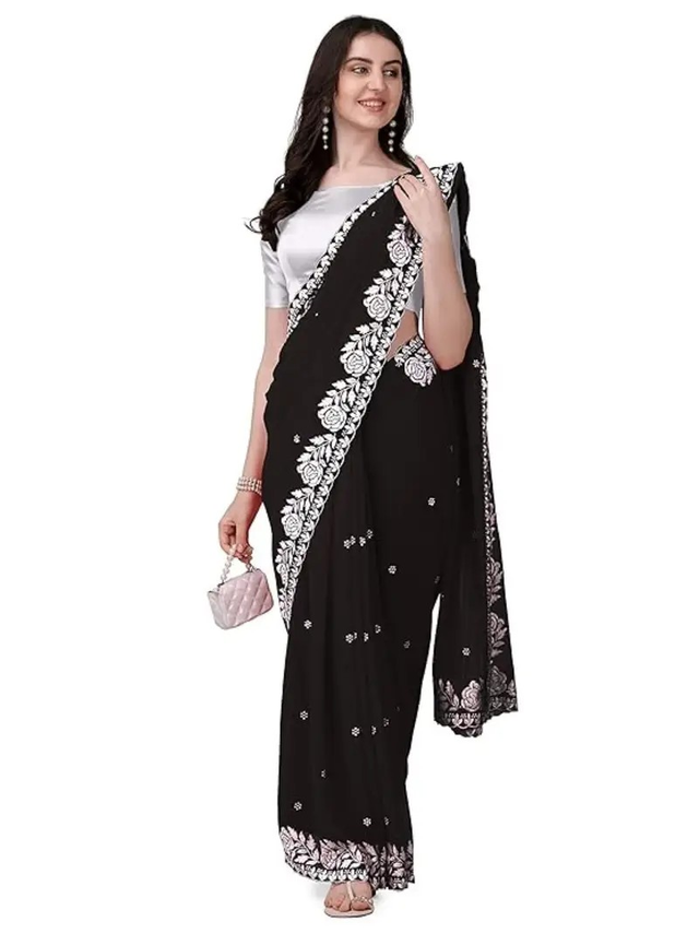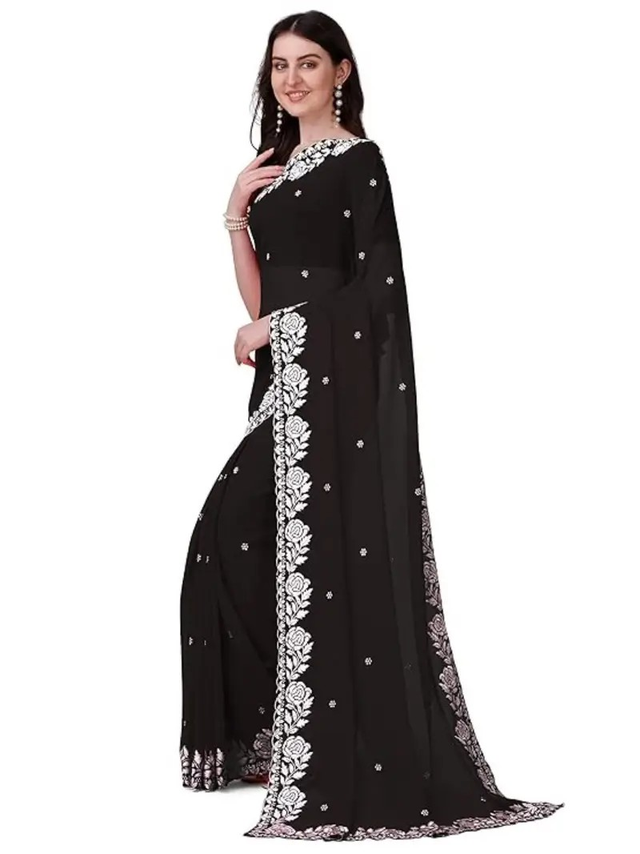 Estationeryhouse Women's Georgette Embroidery Border Work Designer Saree with Blouse Piece